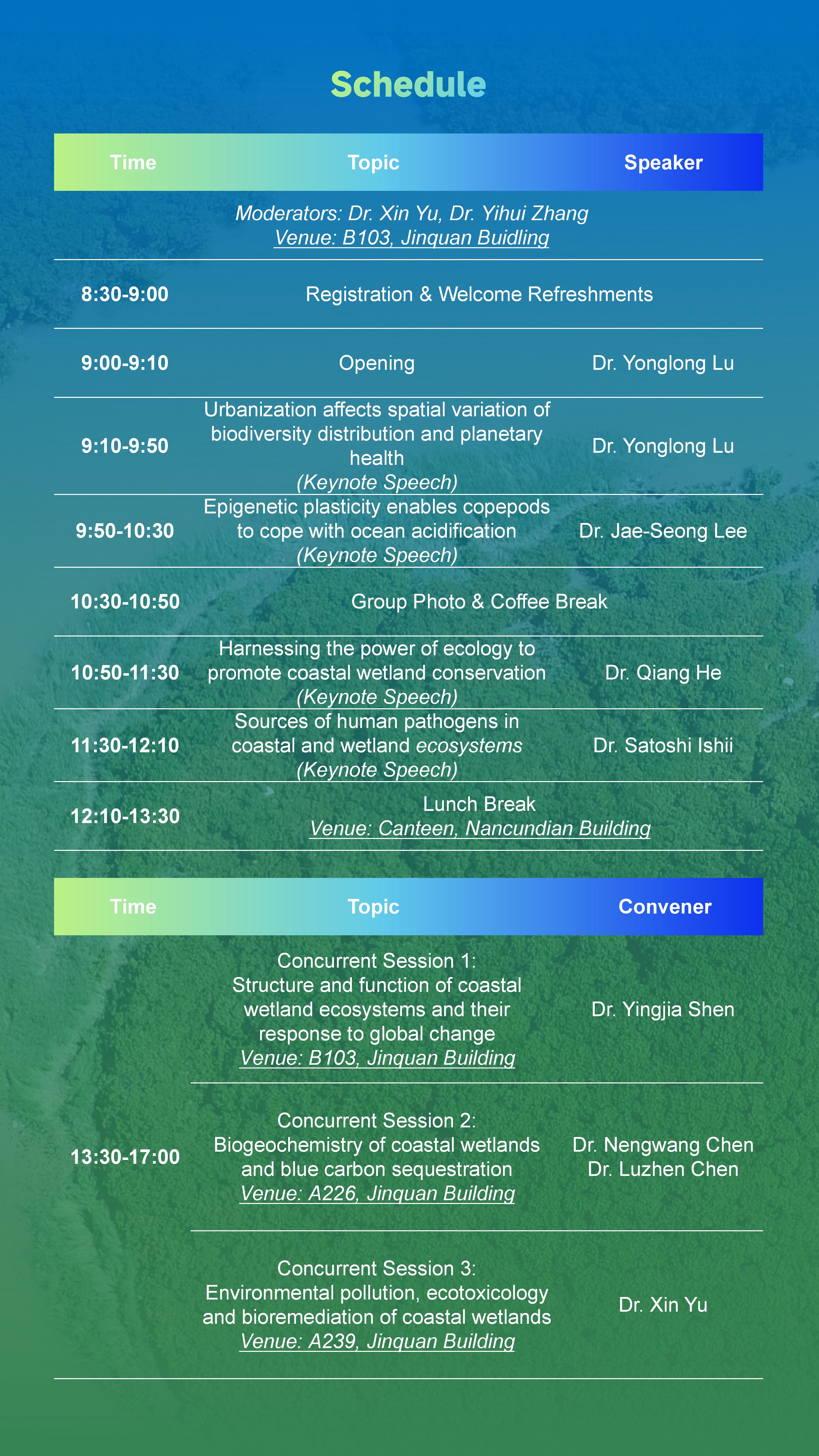 Coastal wetland ecosystems is known as one of the most productive ecosystems on the Earth, and they are vital to environmental health, sustaining economic development, and preserving biodiversity. They are also playing an increasingly important role in mitigating climate change and environmental degradation. However, coastal wetland ecosystems are facing unprecedented challenges in the context of global change and increasing anthropogenic activities. Coastal wetland ecosystems have become one of the most vulnerable ecosystems in the world.