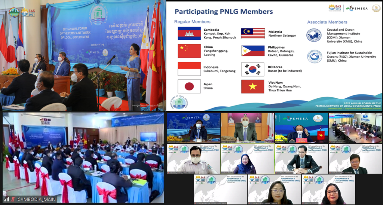 会议由柬埔寨西哈努克省政府主办,PNLG秘书处、东亚海环境管理伙伴关系组织(PEMSEA)秘书处承办,采用线上线下相结合的方式召开,线下会场设在柬埔寨西哈努克省。本次年会以“携手建设充满希望的海洋新十年”为主题,共有来自中国、柬埔寨、印尼、日本、马来西亚、菲律宾、韩国、东帝汶、越南等9个国家的30多个PNLG成员单位100多名代表线上线下参会。