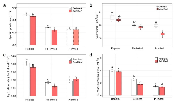 Iron and phosphorus limitations modulate the effects of carbon dioxide enrichment on a unicellular nitrogen-fixing cyanobacterium